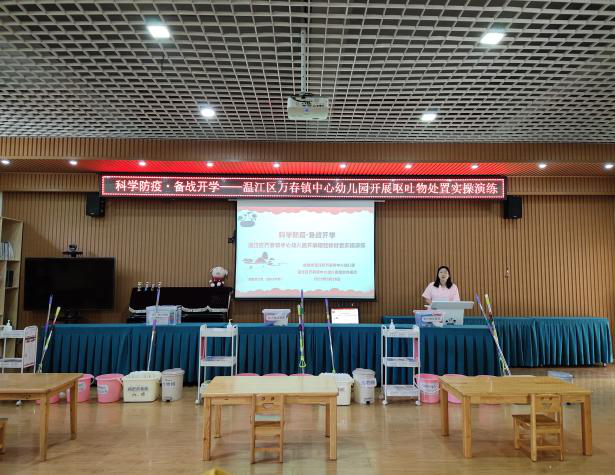 为进一步做好复学准备工作,加强教职工对突发事件的快速有效、规范的处置,万春镇中心幼儿园于5月28日上午进行了呕吐物实操演练。本次演练中心园和踏水分园的保育教师,及新教师全部参与。