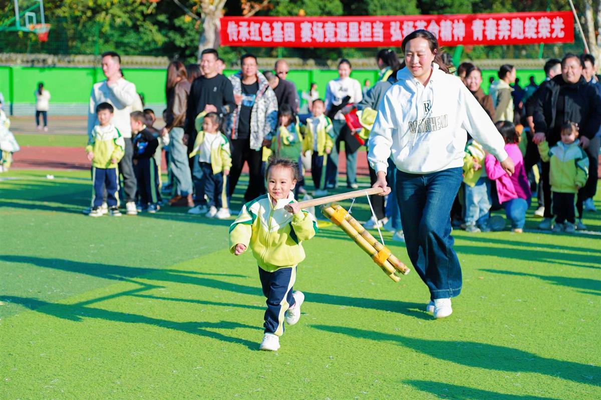 随后就是幼儿们最期待的运动游戏环节啦,不仅是体能的挑战,更是一堂堂生动的自然课:在红薯拉车的平衡与协作中了解冬藏的农作物;在南瓜滚滚中锻炼着孩子们的协调与判断;在秋收运粮忙中体会劳作辛苦,萌发惜粮之心;在蔗有点甜中品尝到协作胜利的甜美;在白菜抱抱抱中,让亲子情感持续升温。