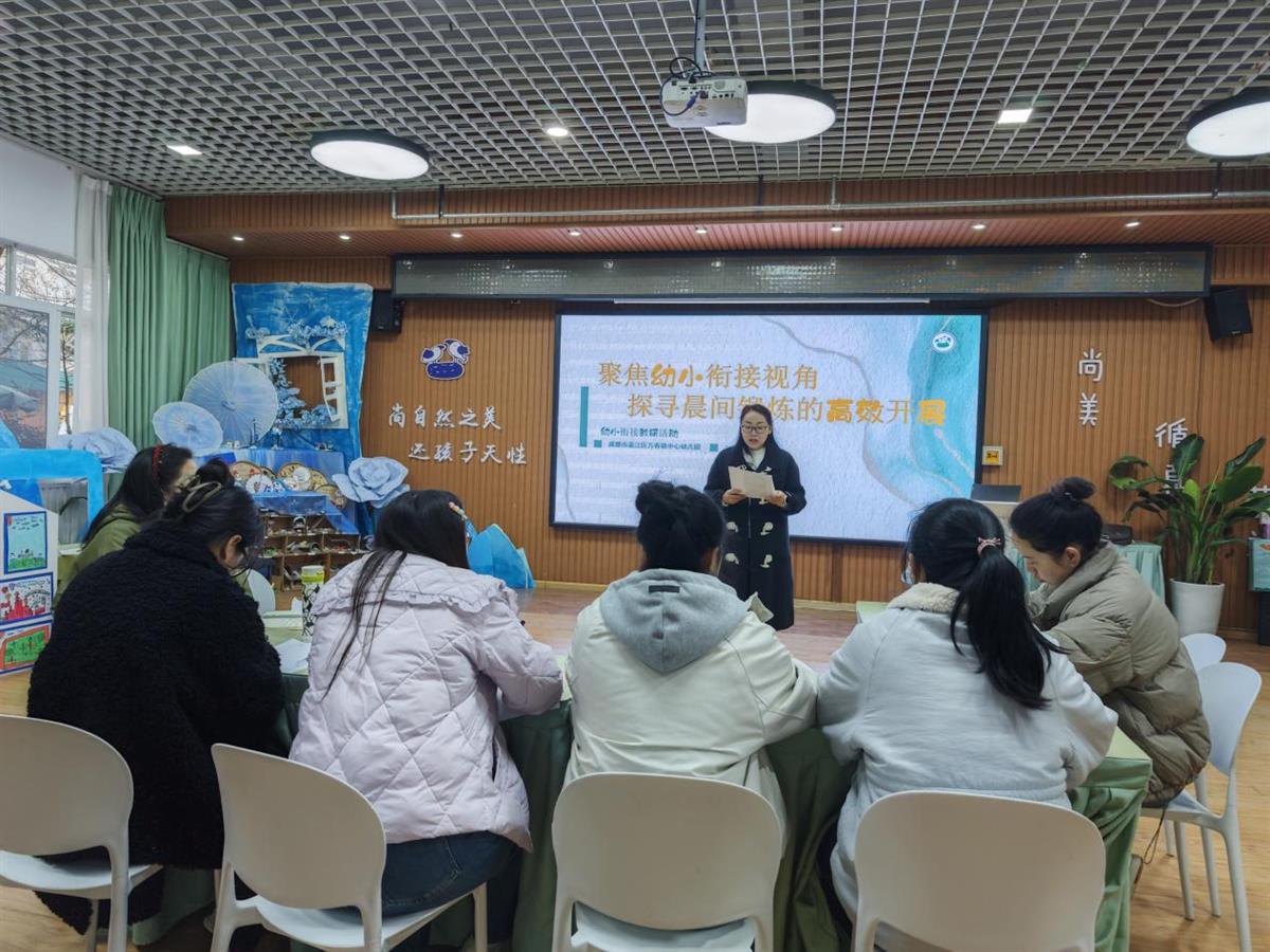 在小组分享环节,各年级组代表精彩呈现了本组的研讨成果。从活动形式的创新点到器械的巧思运用,再到与幼小衔接能力点的精准对接,每一个方案都凝聚着老师们的智慧与用心。