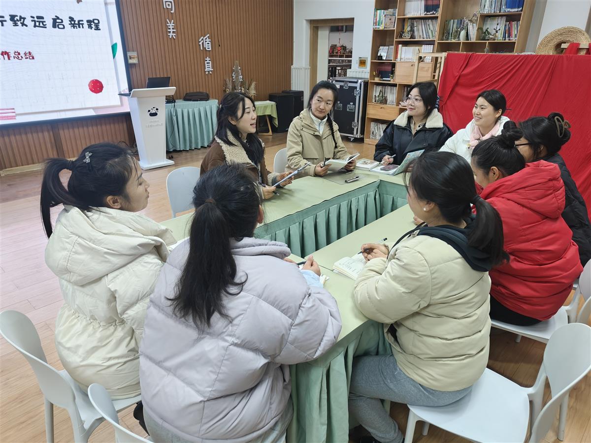 大班年级组教师团队精诚协作、聚力前行。年级组长彭晓琴老师以《我们一起,走过温暖的路》为题,系统回顾了本学期教研工作:从预设性主题活动的扎实开展,到基于幼儿兴趣的生成性活动的灵活推进,各班均能立足本班幼儿发展实际,构建出丰富多元的教育生态。无论是“润物细无声”的班级环境创设,还是“家园手牵手”的协同共育机制,处处彰显着教师团队的教育智慧与专业匠心。随后,大班组教师代表依次分享了个人在课程实施、观察评价等领域的成长体悟,在思维碰撞中进一步凝聚了“以儿童为本”的教育共识。