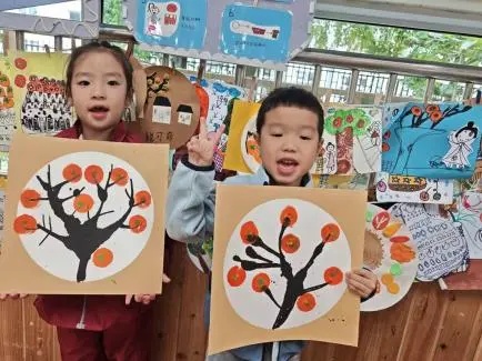 风信子班的孩子们走进自然,亲身体验“采柿子”活动,感受丰收的喜悦;回到教室后,他们品尝清甜的柿子,并通过创意手工“绘柿子”,用画笔和黏土将柿子的形态生动地呈现出来。